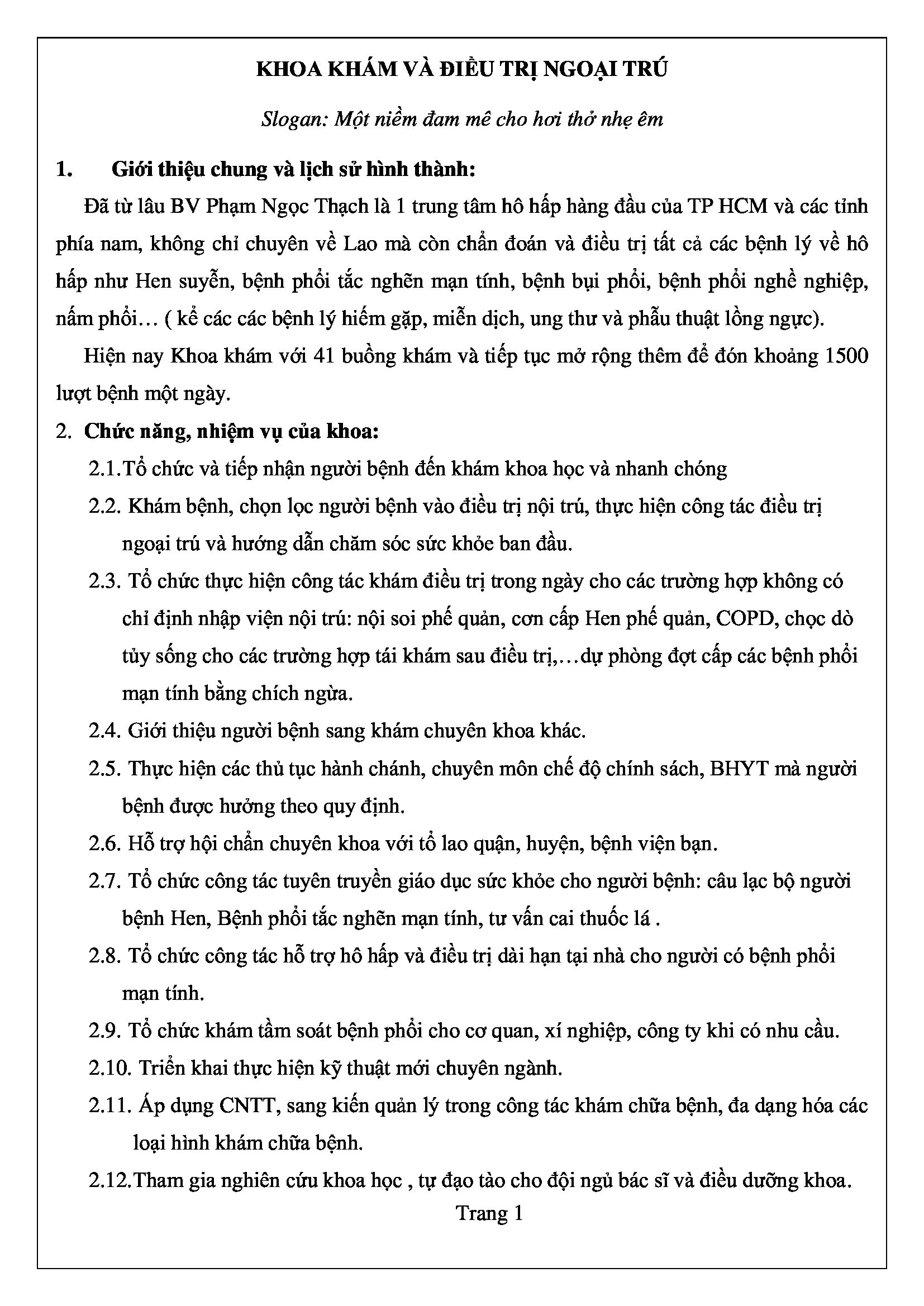 - Tổ chức quản lý điều trị ngoại trú các bệnh hô hấp mạn tính, bao bao gồm quản lý hồ sơ điều trị ngoại trú theo quy định